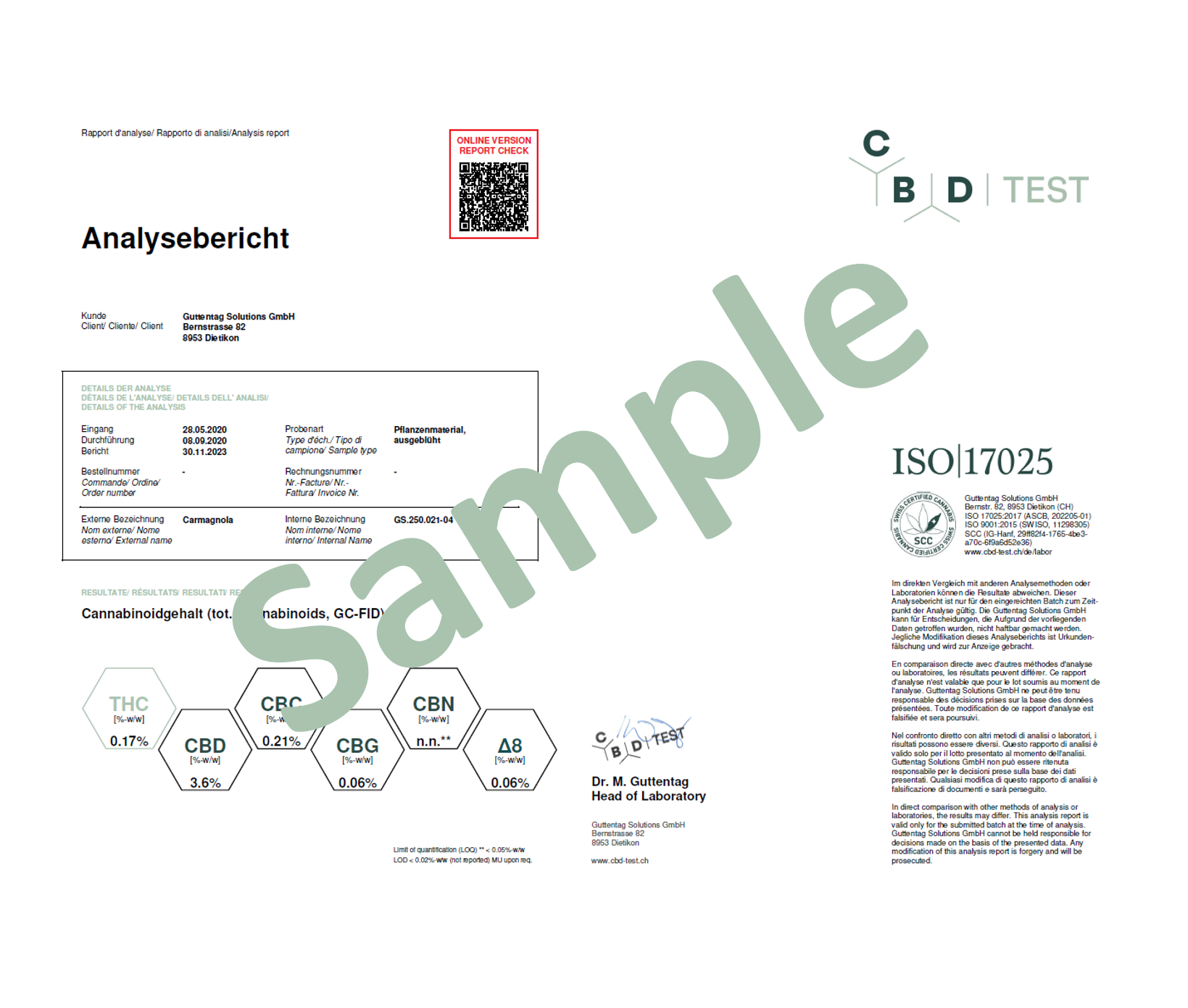 Analyseberichte zu fälschen ist Urkundenfälschung und daher ein Offizialdelikt. Analyselabore müssen gefälschte Berichte somit zur Anzeige bringen. Bereits das Abdecken der Kundenadresse oder das Verwenden von wiedererkennbaren Teilen des Designs ist illegal.